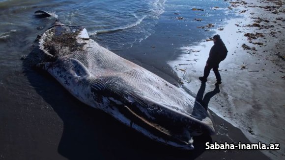 Qırmızı Kitaba daxil edilmiş 12 metr uzunluğundakı siyənək balinasını fırtına sahilə çıxardı