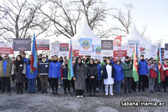 Sükut dəqiqəsindən sonra Xocalı faciəsi ilə bağlı şüarlar səsləndirilib.
