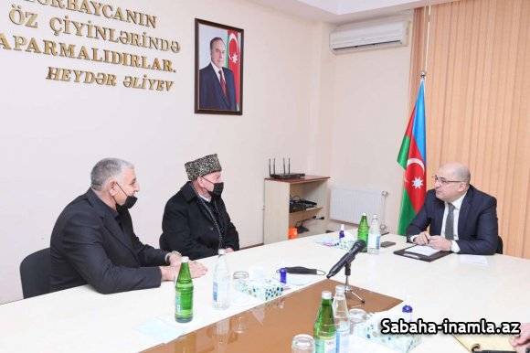 DGK sədri qəbuldan öncə Saatlı şəhərinin mərkəzində ümummilli lider Heydər Əliyevin abidəsini ziyarət edərək önünə gül dəstəsi qoyub.