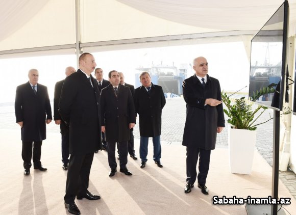 Prezident İlham Əliyev Bakı Beynəlxalq Dəniz Ticarət Limanı kompleksində Ro-Ro terminalının açılışında iştirak edib